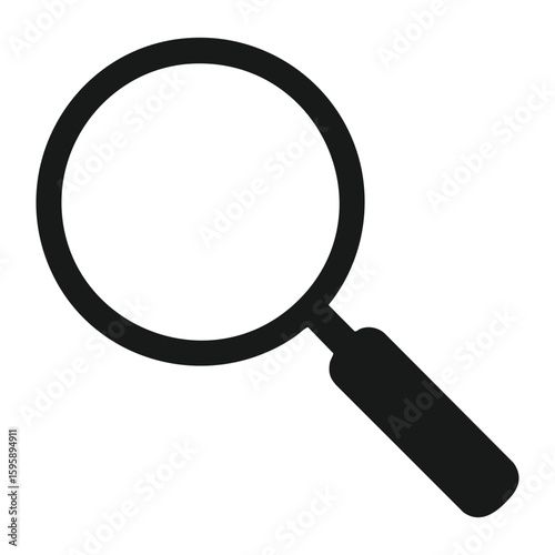 Black magnifying glass icon isolated on white background, search and zoom symbol for exploration, discovery, and analysis concepts