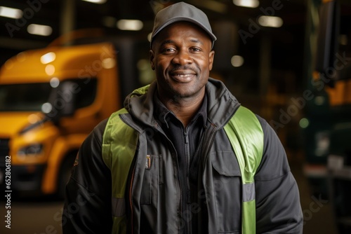 Black Man Industrial Truck Operator Professional Job Work Environment Backdrop Generative AI