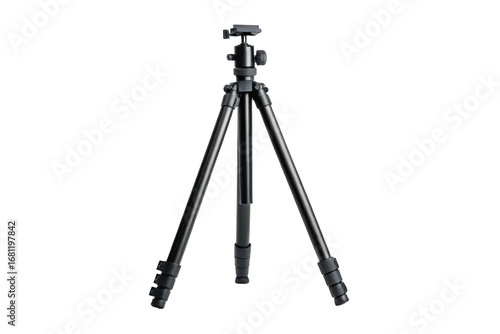 Black metal tripod for photography isolated on transparent background