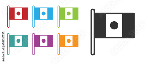 Black Mexico flag on flagpole icon isolated on white background. Set icons colorful. Vector.