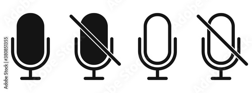 Black microphone icon. No Microphone sign. Microphone forbidden sign