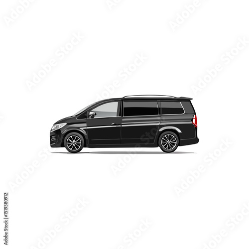Black Minivan Vehicle Silhouette Symbol Icon Side View Illustration