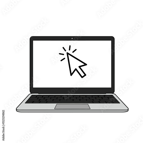 Black modern digital laptop with confirmed check icon, simple tech flat design illustration infographic pictogram vector, app logo web button ui ux interface element isolated on white background