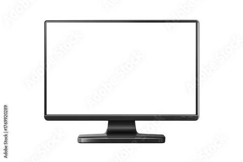 Black Monitor with Blank White Screen on Transparent Background for Customizable Display Mockup, PNG