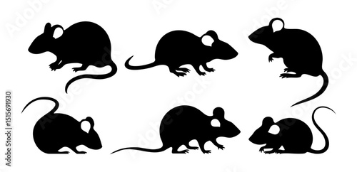 Black mouse silhouette vector art collection for graphic design and illustration projects, mouse clip art images