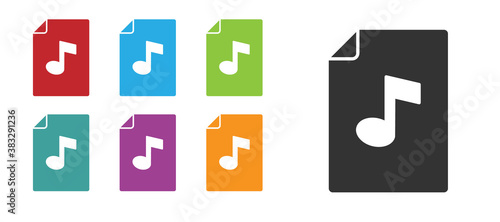 Black Music book with note icon isolated on white background. Music sheet with note stave. Notebook for musical notes. Set icons colorful. Vector.