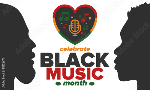 Black Music Month in June. African-American Music Appreciation Month. Celebrated annual in United States. Music concept. Poster, card, banner and background. Vector illustration