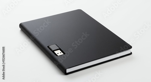 Black notebook with integrated usb port modern technology and digital data storage concept