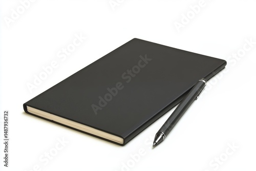 Black notebook with pen, ideal for journaling, note taking, and professional use.