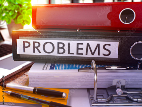 Black Office Folder with Inscription Problems on Office Desktop with Office Supplies and Modern Laptop. Problems Business Concept on Blurred Background. Problems - Toned Image. 3D.