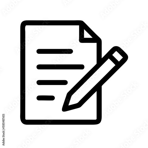 black outline document with a pencil icon is ideal for writing blogs, content creation websites, or digital form applications