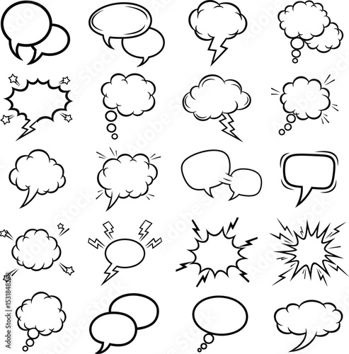 Black Outline Vector Speech and Thought Bubbles in a Comic Book Style