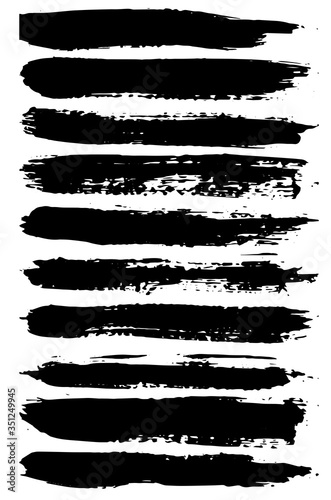 Black paint brush strokes, dirty inked grunge art brushes. Creative sketch brush stroke, illustration of brush stain line