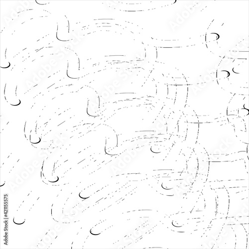 Black paint brush strokes vector seamless pattern. Hand drawn curved and wavy lines with grunge circles. brush scribbles decorative texture. Messy doodles, bold curvy lines illustration.