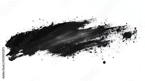 Black paint, ink, or watercolor brush stroke on white background, abstract grunge texture element.