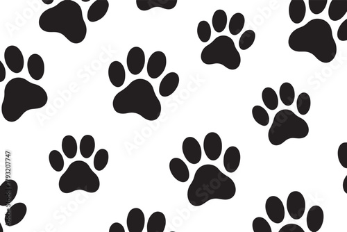 Black Paw Prints Seamless Pattern with Claw Mark Details on Clean White Background