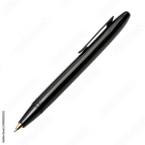 Black pen, sleek black pen with shiny finish, perfect for writing and signing documents, exuding professionalism and elegance, isolated on transpired background