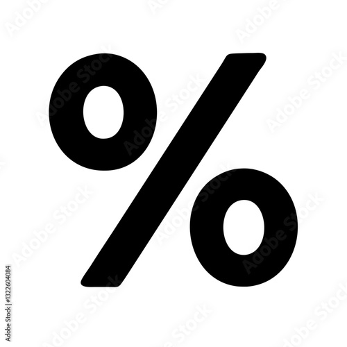 Black percentage symbol on white. Use for finance, sales, discounts, statistics, and data visualization.