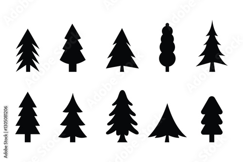Black pine tree icon set. Flat style silhouette symbol website logo design. Pine trees banner concept vector isolated on white background. Christmas tree modern icons. Vector illustration.