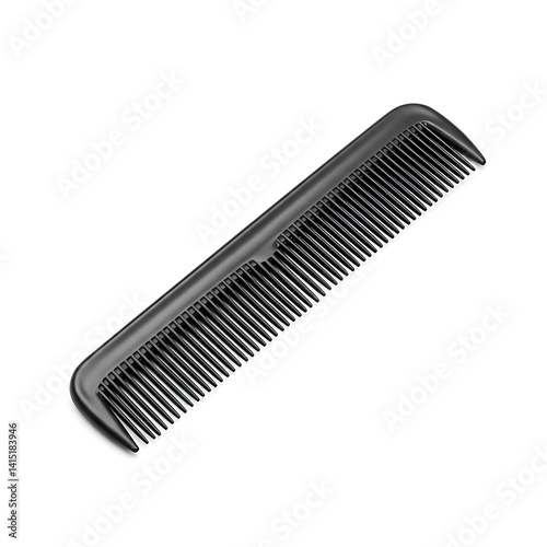 Black Plastic Comb: Fine and Wide Teeth, Clean Minimalist Style, Isolated on White.