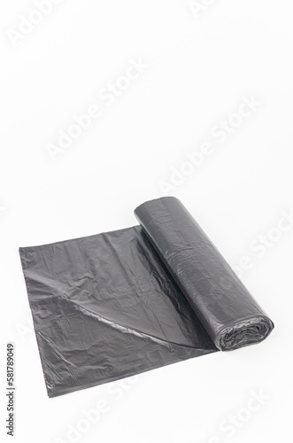 Black plastic garbage bags isolated on white background, clipping path included.