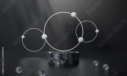 Black podium and black background stand or podium advertising display light emission. 3D rendering.