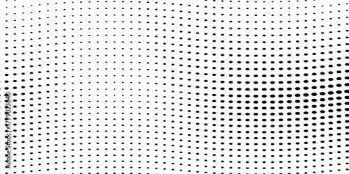 Black polka dots seamless pattern on white background. Halftone minimalist abstract wall in diagonal lines.