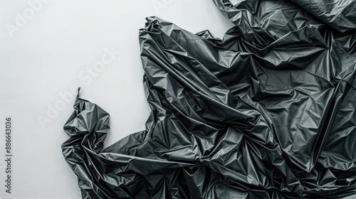 Black polyethylene on a white background. Crumpled polyethylene. AI generated