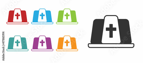 Black Pope hat icon isolated on white background. Christian hat sign. Set icons colorful. Vector