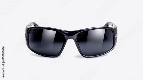 Black Rectangular Sunglasses with Dark Lenses on White Background