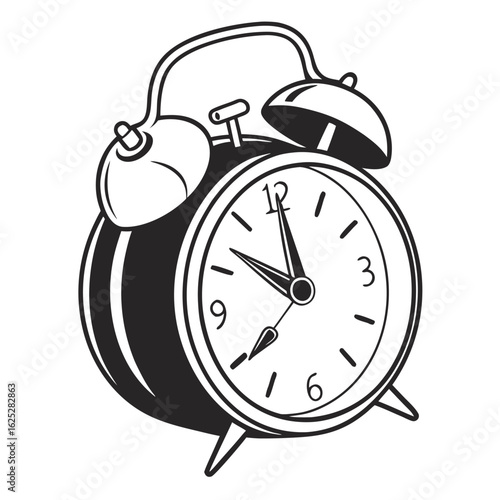 Black retro alarm clock with twin bells, a classic vintage object for reminding you of the time