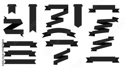 Black ribbon banners collection on transparent background — vector graphic element, clipart for luxury design projects svg