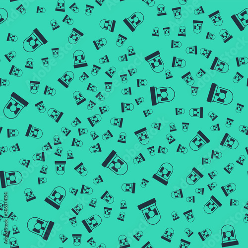 Black Ringing alarm bell icon isolated seamless pattern on green background. Fire alarm system. Service bell, handbell sign, notification symbol. Vector
