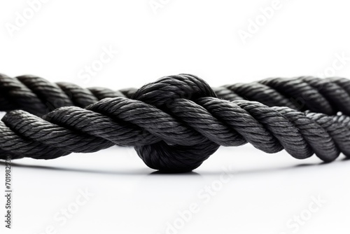 Black rope isolated on white background in close up