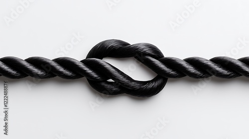Black Rope Knot on White Background A Study in Texture and Intertwining