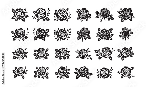 Black Rose Silhouette Collection, Elegant Floral Vector Design Elements