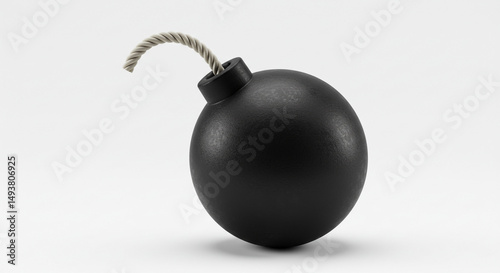 Black Round Bomb with Fuse Still Life Explosive Threat Danger Cartoon Violence Time Bomb Concept 3D