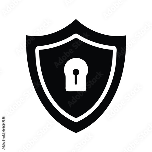 Black shield with keyhole for security and protection icon illustration, Keyhole security silhouette vector illustration