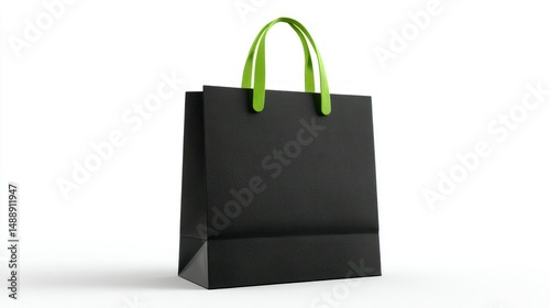 Black Shopping Bag with Green Handles Minimalist Design for Retail and Fashion Photography