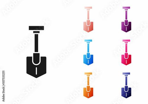 Black Shovel icon isolated on white background. Gardening tool. Tool for horticulture, agriculture, farming. Set icons colorful. Vector