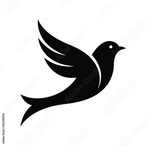 Black silhouette bird flying freedom nature simple vector illustration isolated on white