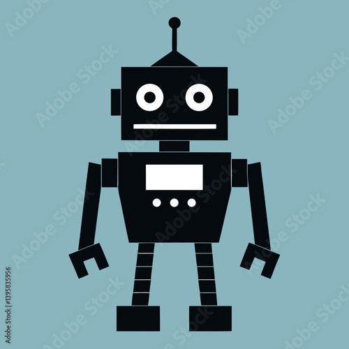 Black Silhouette Cute Robot Character with Antennas and Smiling Face"