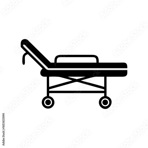 Black silhouette icon of a medical stretcher with wheels on a white background hospital bed