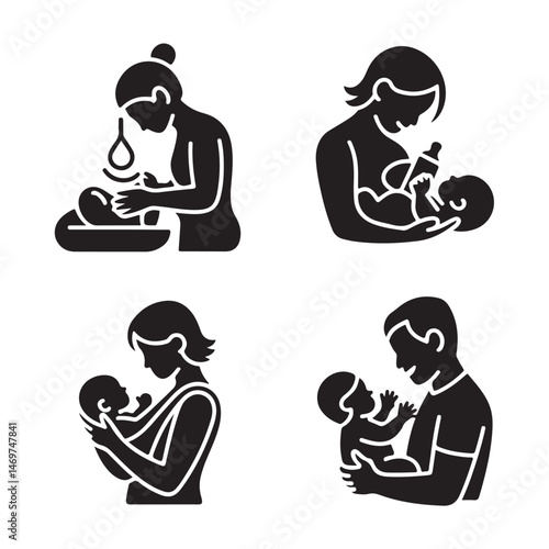 Black Silhouette Icons of Baby Care and Parenting Activities