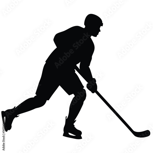 Black Silhouette Illustration Depicting Hockey Player in Action, Complete with Helmet and Stick