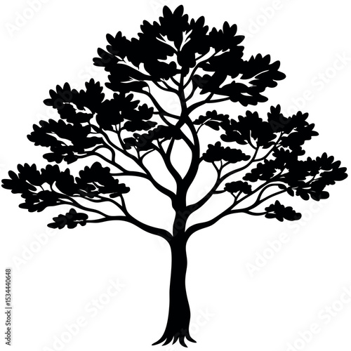 Black Silhouette Juniper Tree Bushy Branches Line Art