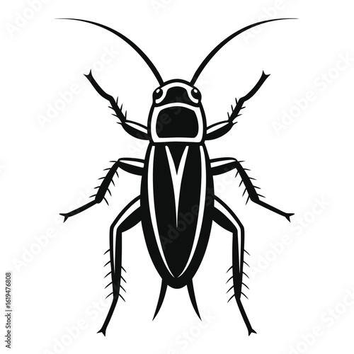 Black silhouette of a cricket on a white background insect