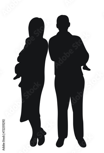 Black silhouette of a family picture, sketch of father and mother silhouette with children in their arms, twins, isolated vector