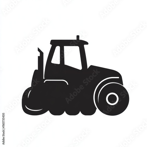 Black Silhouette Of A Farm Tractor On White Background