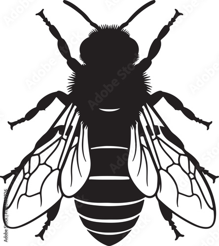 Black silhouette of a honey bee viewed from above on a white background insect animal on transparent background